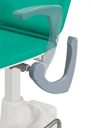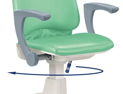 Scaunele au posibilitatea de a roti scaunul în raport cu baza cu 90 ° (spre dreapta sau spre stânga) . Rotația este blocată cu ajutorul unui mecanism cu șurub de înaltă calitate, accesibil sub scaun. Rotația facilitează accesul la echipamentul de diagnosticare, ceea ce are un efect pozitiv asupra ergonomiei muncii. Posibilitatea de a înclina și de a scoate suporturile pentru mâini permite accesul ușor și confortabil la pacient. Tetieră stabilă cu reglare multifuncțională a poziției.