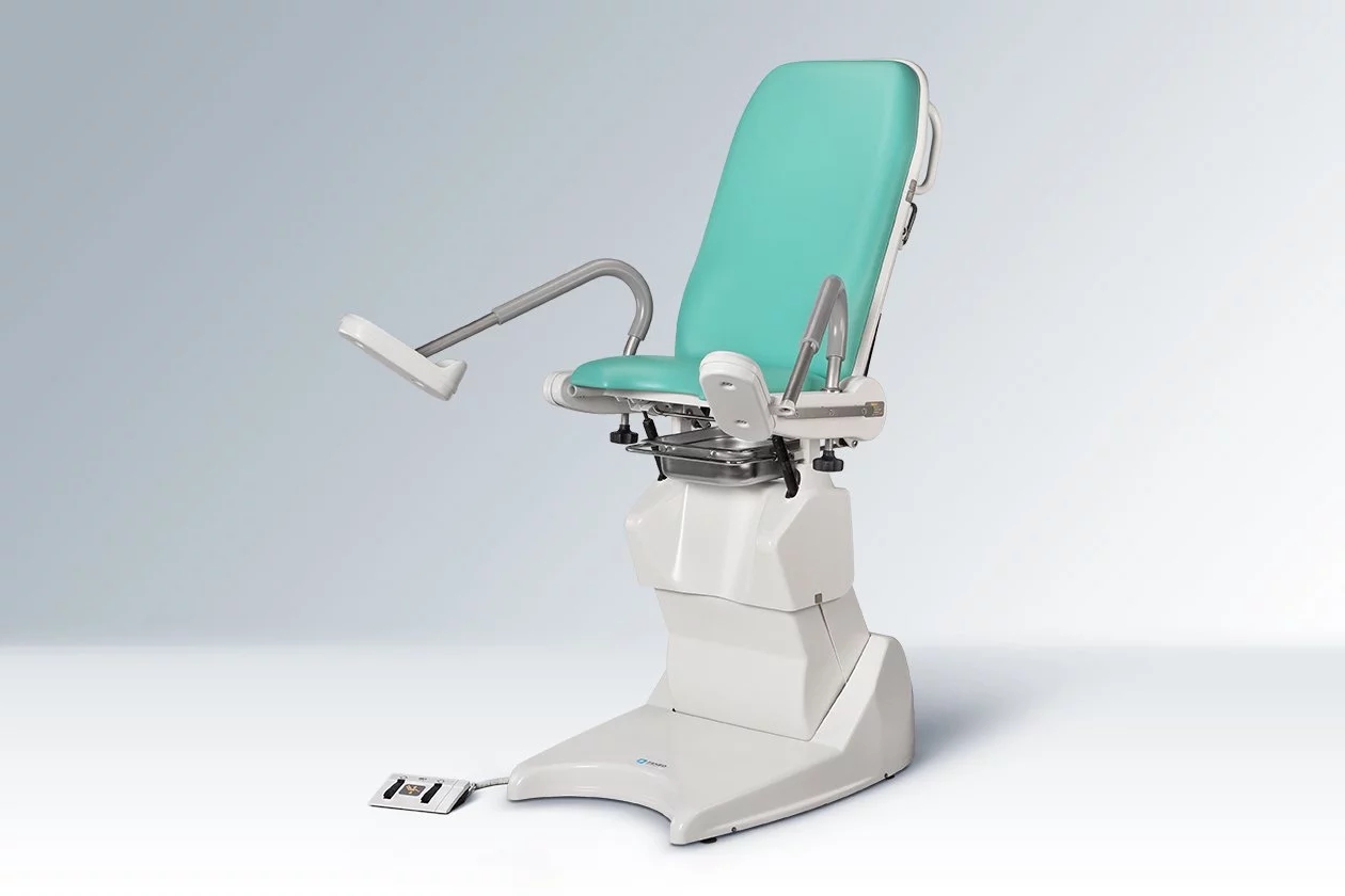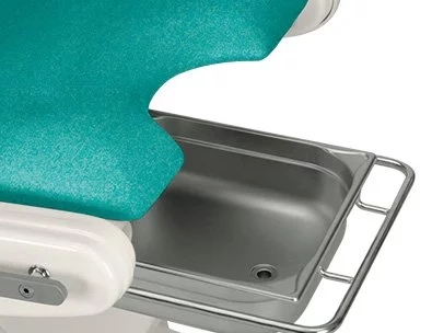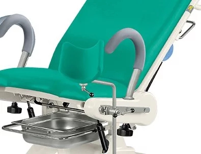 В состав кресла входят: бесшовная обивка, гинекологическая миска из нержавеющей стали, держатель для бумаги за спинкой, планки для крепления оборудования на сиденье и спинке.